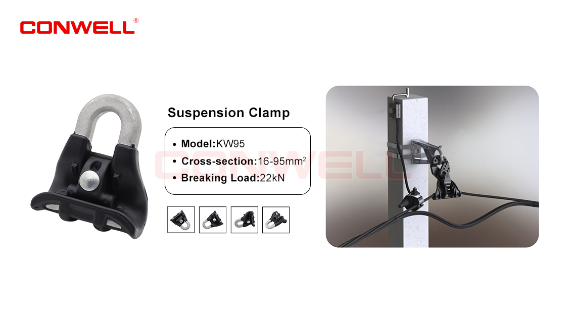 CONWELL KW95 is a suspension #clamp used for the suspension of insulated messenger wire in straight lines and at angles up to 90°