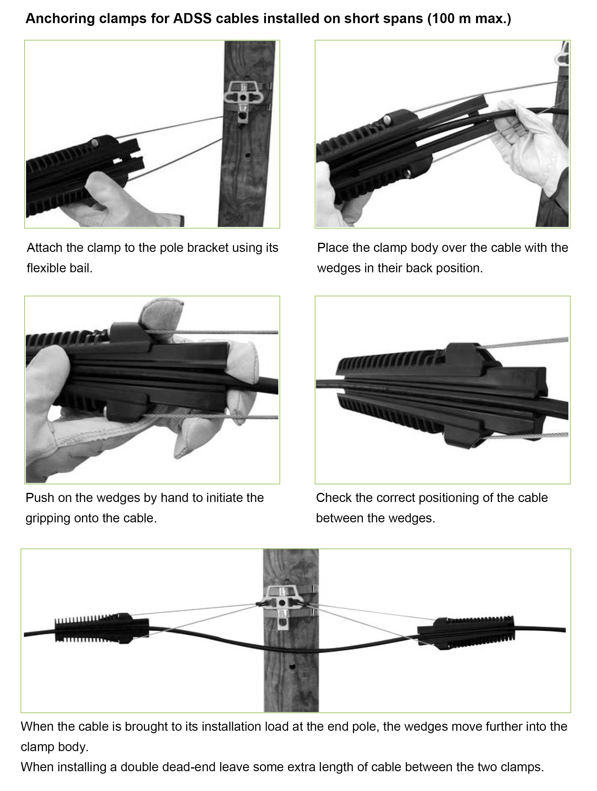 The anchoring clamps are designed for a fast, easy and reliable dead-ending offibre optic cables on access networks with spans up to 100 m.