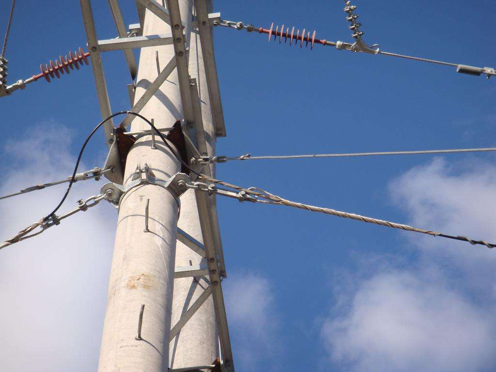 The closed circle is then connected to an anchor rod or insulators on a pole or tower.