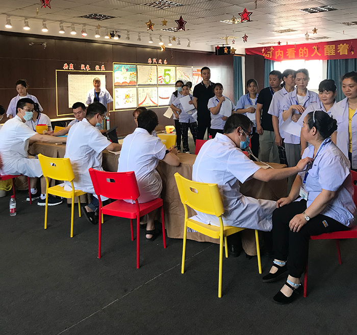 Under the leadership of Dean Xu, 5 doctors arrived at the activity room on the sixth floor at 7:50, to make the arrangement for physical examination.