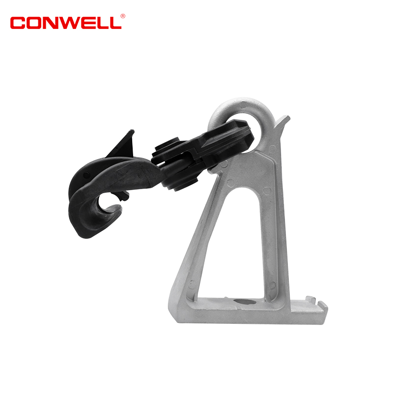 Suspension clamp is used for hanging ABC in the air, by cliping a netural messenger cable, and connected to a eye bolt, or a pig tail hook, which is fixed on the wooden pole.