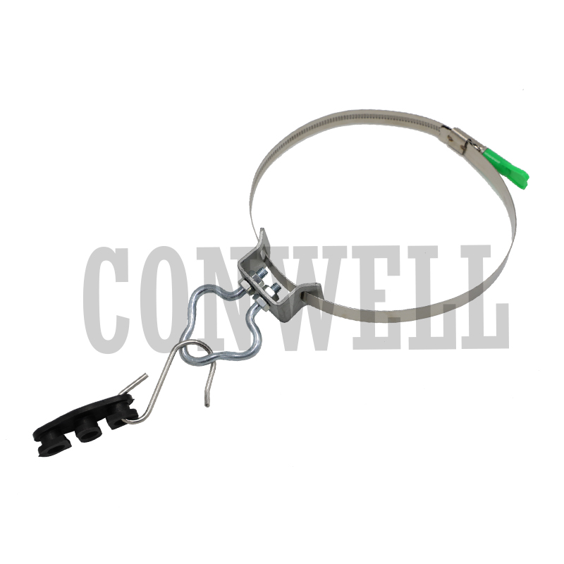 Pole Mounting bracket is more suitable to mount on poles with stainless steel straps, it is widely used in FTTx projects, to fix drop cable wire anchoring clamp, suspension clamp. Pole bracket for suspension clamp is used for optical fiber cable link fittings. It is fastened by stainless steel band on the pole.
